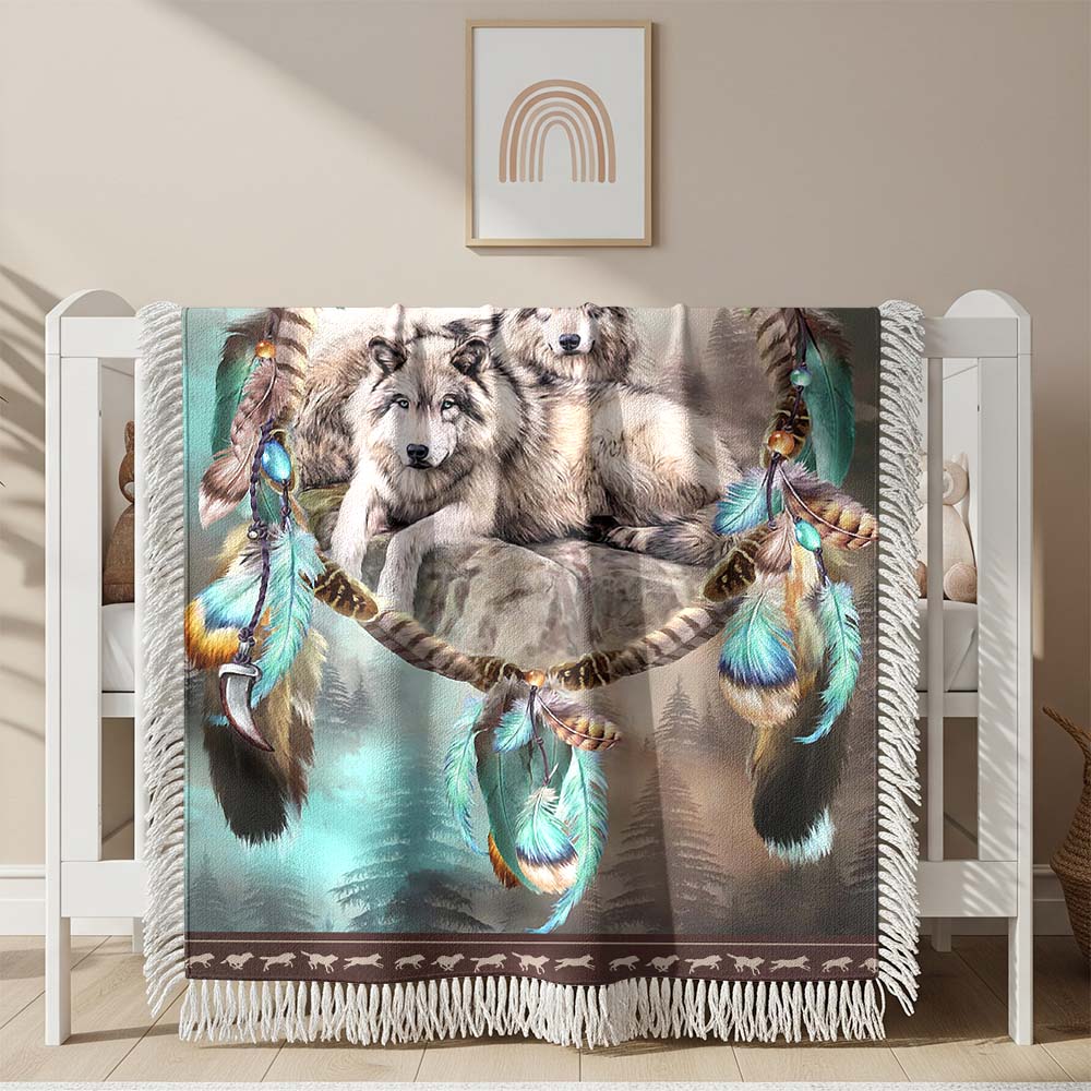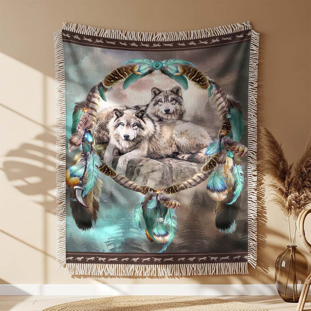 Couverture tissée Loups Attrape-rêves