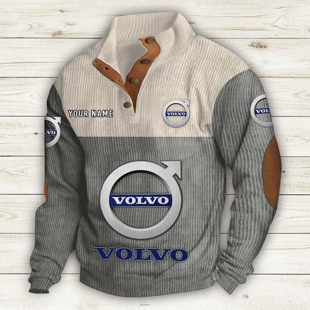 Doté d’un col montant, d’une patte de boutonnage partielle et de détails raffinés comme des empiècements en suédine au col et aux coudes,